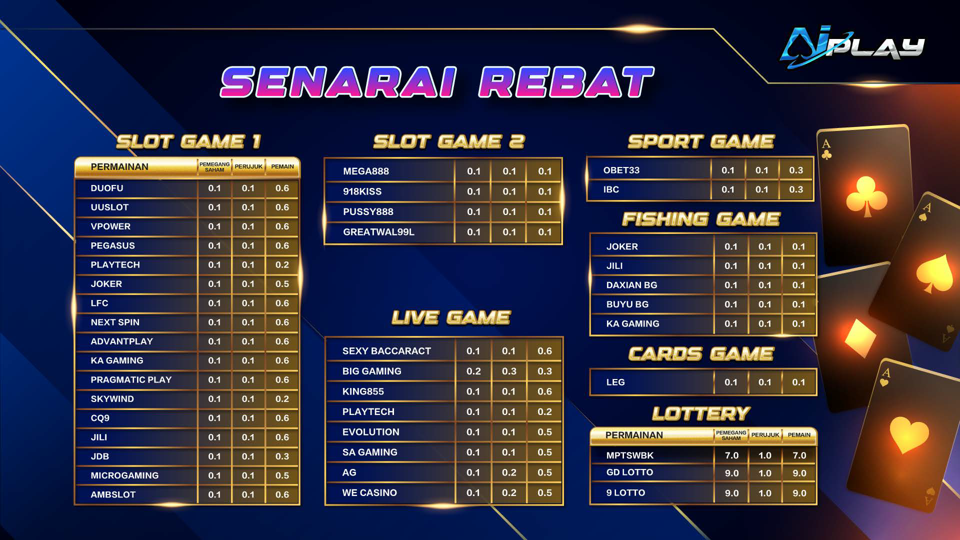 AIPLAY is among the most successful online live casino in Malaysia. AIPLAY offer a stress-free and easier way for customer to do deposit and withdraw digitally. Each transaction can be completed quickly and effortlessly. These highlights make gaming in AIPLAY secure as well as pleasant so players feel comfortable when committing to our website.
