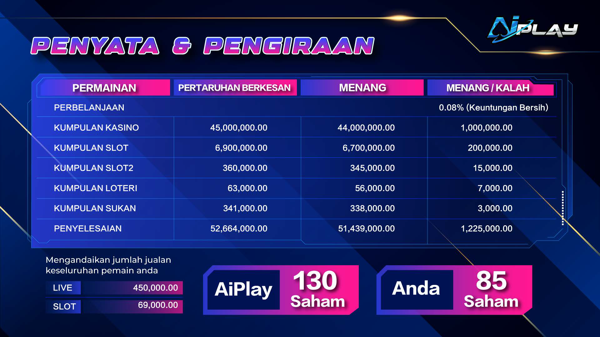 Datang dan temui dunia peluang dengan menjadi sebahagian daripada syarikat AIPLAY yang berprestij. Sebagai ejen yang dihargai, anda akan teruja menjadi sebahagian daripada platform dinamik ini sambil menikmati pelbagai peluang untuk memperoleh pulangan yang baik. Dapatkan wang besar untuk setiap pemain yang anda rujuk, untuk seumur hidup. Tidak perlu lagi kerumitan dalam membantu pelanggan dengan tambah nilai mereka; sistem automatik moden kami menjamin pengalaman terbaik. Di AIPLAY, proses pengeluaran pendapatan anda sangat mudah dan menjadikan manfaat kewangan lebih selesa. Kakitangan kami sangat bermotivasi untuk bekerja sepanjang masa untuk anda dengan tujuan menjana keuntungan harian, dan kami menawarkan anda cara kejayaan tanpa pelaburan modal sendiri.